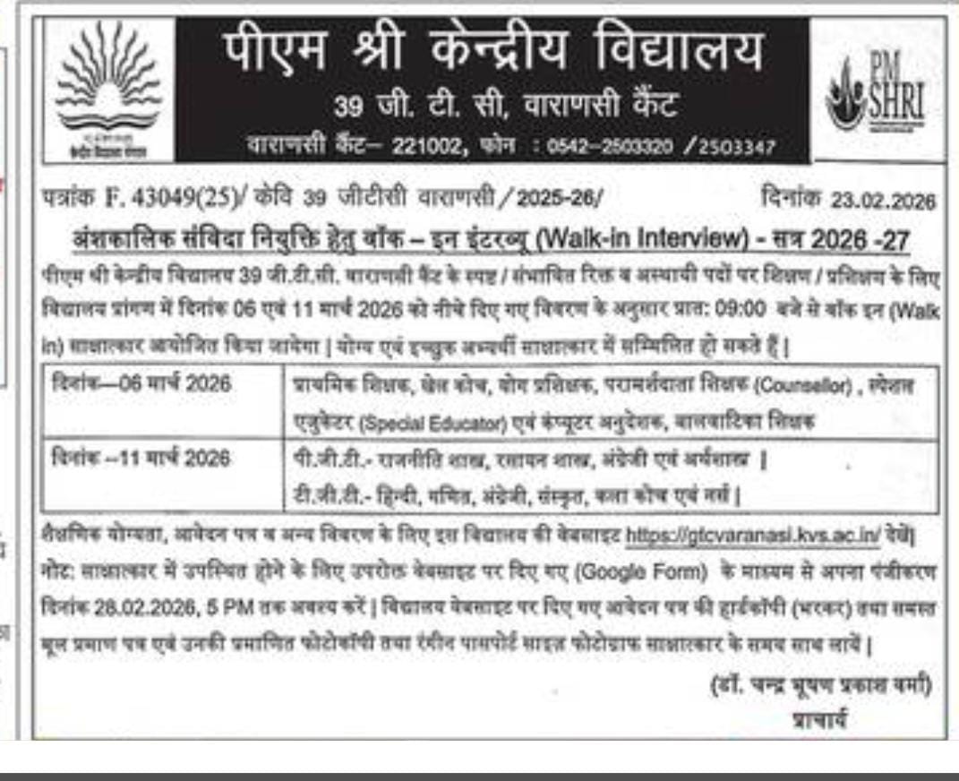 - अंशकालिक संविदा नियुक्ति हेतु वॉक-इन-इंटरव्यू के लिए विज्ञापन (सत्र 2026-27) नई